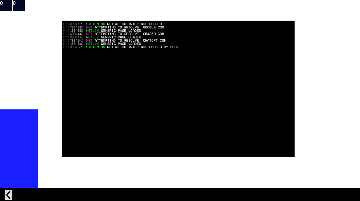 netswitchcommand. - Details: This panel simulates a network interface and basic web browsing.